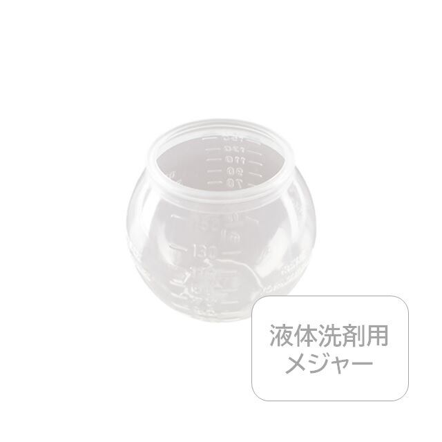 液体洗剤用計量カップ。 洗濯洗剤を計ったあとはそのまま洗濯機に入れ、衣類と一緒に洗えます。 丸い形で衣類にからまず、ドラム式洗濯機にも使えます。